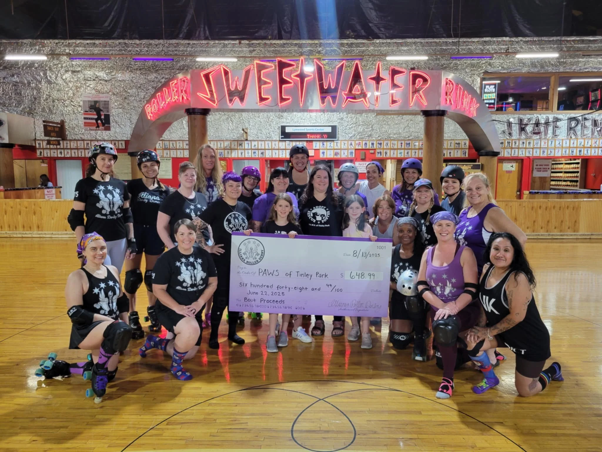 Illiana Roller Derby raised $648.99 and collected generous donations of supplies for PAWS of Tinley Park a shelter dedicated to providing refuge for abandoned pets, promoting animal education with their community, and finding safe, new homes for domesticated animals. We are proud to support their cause.